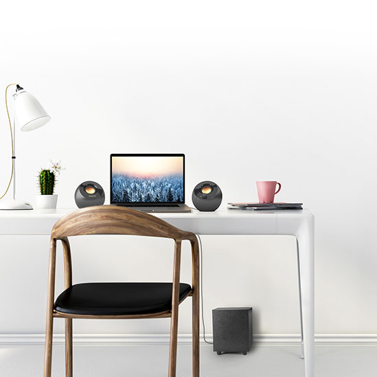 作為緊湊而強大且榮獲 “2018 年度 PC Mag 最佳電腦喇叭” 榮譽的後繼者,Creative Pebble Plus 提供雙倍低音,同時保持優雅簡約的設計和 USB連接供電,增強了您的聆聽體驗。此喇叭採用雙遠場驅動單元和 45° 傾斜角的設計,配有向下發射的重低音喇叭,提供了透徹的清晰度和更響亮的低音。