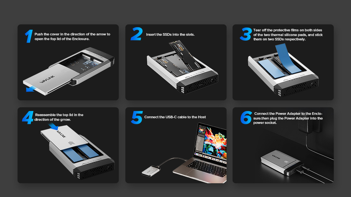 這款硬碟盒的安裝和使用非常簡單。依照圖示步驟操作,即可享受外接硬碟的便利。