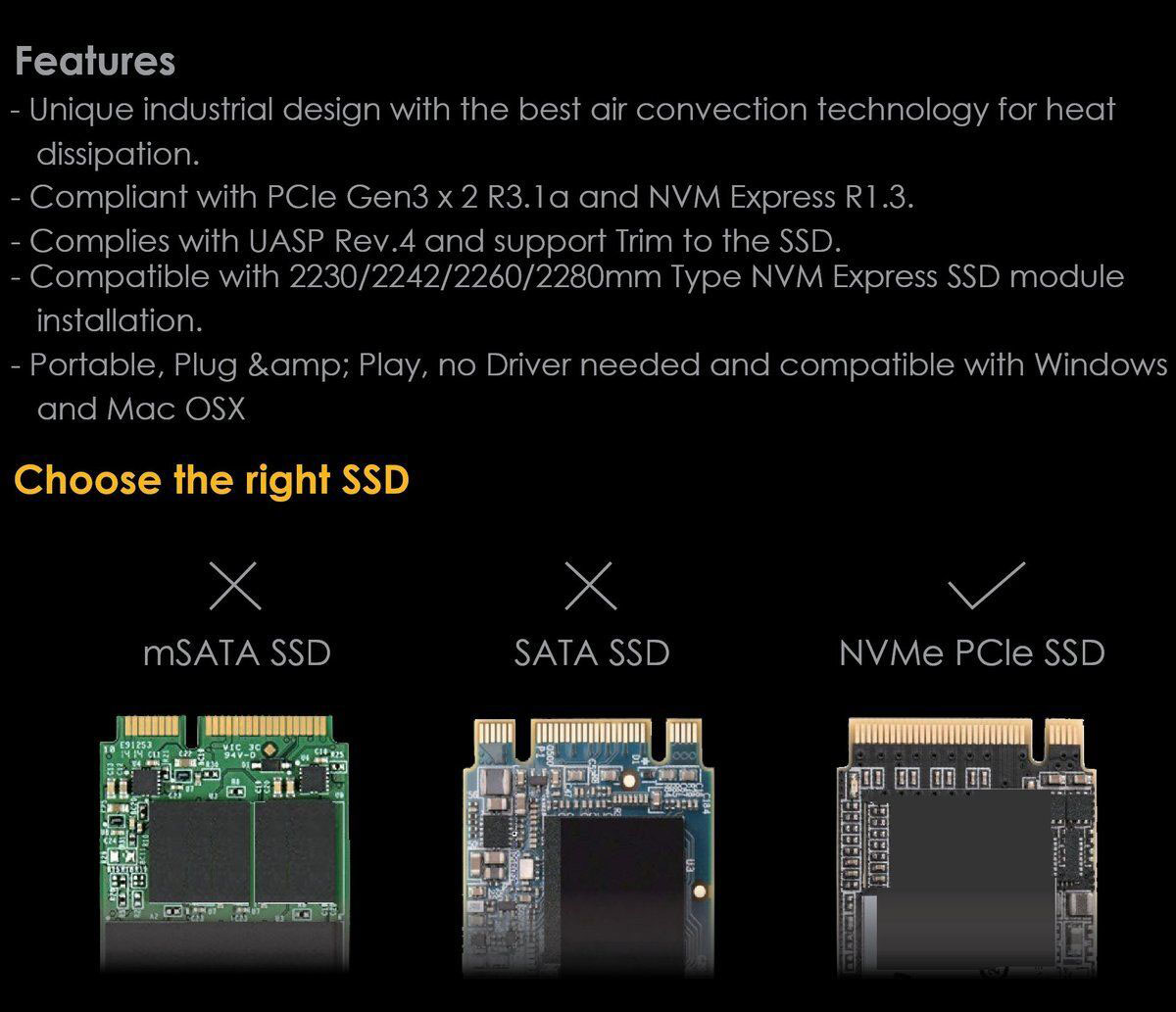- Thunderbolt 3 便攜式 SSD 固態硬碟盒專為 NVMe PCIe SSD 而設,最高傳輸速度可達 3,940 MB/s