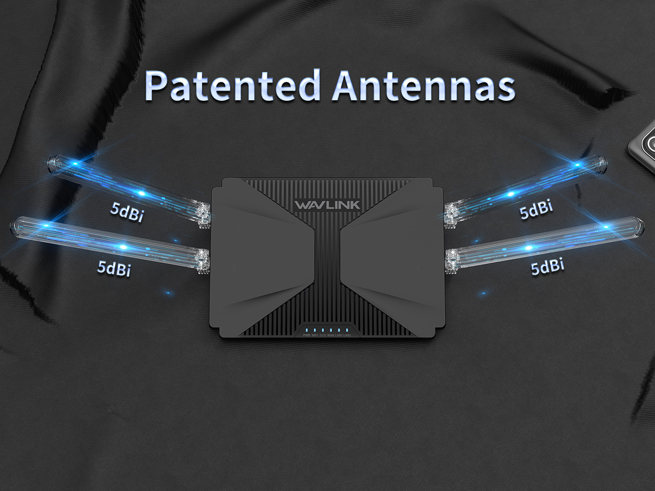四根 5dBi 全向天線,獲得專利,外觀優雅,擴大了無線訊號覆蓋範圍和指向性,為您帶來更佳的線上體驗